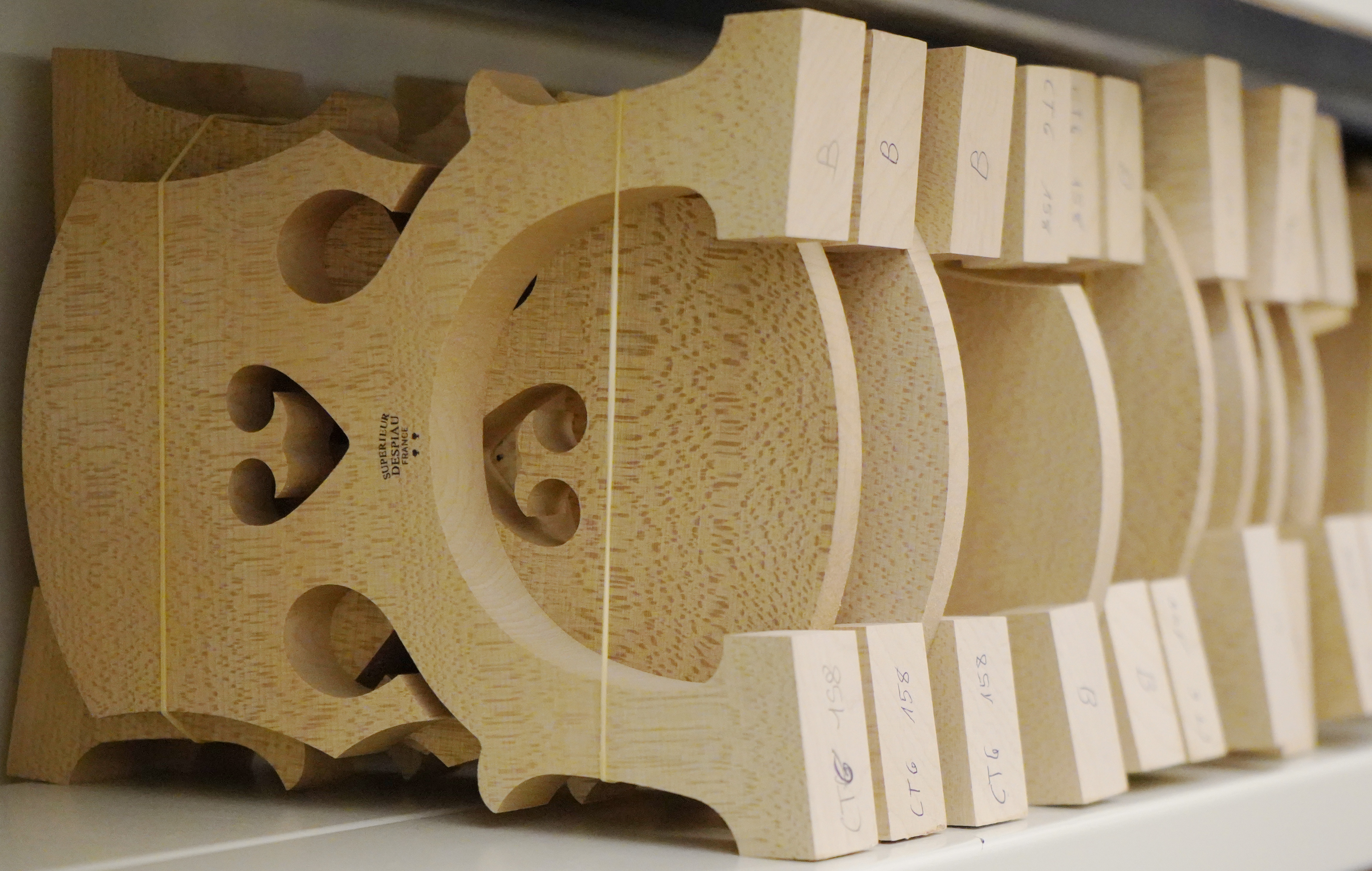 Wirbel, Saitenhalter, Kinnhalter, Sättel, Stimmstöcke, Griffbretter etc.
